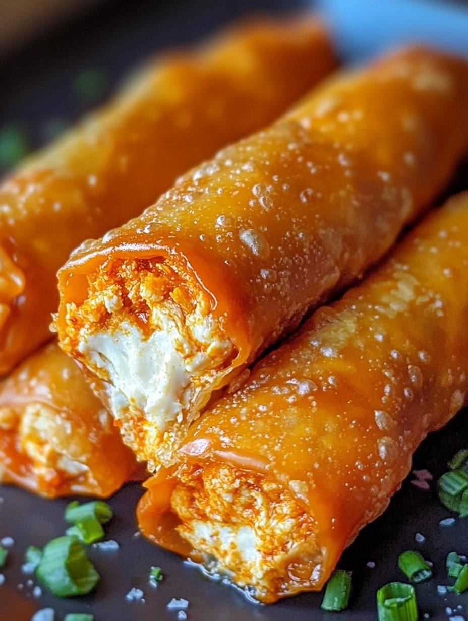 Buffalo Chicken Dip Egg Rolls are popular because they combine the familiar, crowd-pleasing flavors of buffalo chicken dip with a fun, handheld format. They’re perfect for parties, game days, or casual family dinners, and everyone enjoys the combination of a crunchy exterior with a creamy, spicy filling.