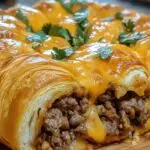 With these simple ingredients, you can create a dish that’s rich in flavor and perfect for sharing. The combination of melted cheese, seasoned beef, and fresh vegetables wrapped in flaky crescent dough makes this Cheesy Taco Crescent Ring a recipe that’s as fun to make as it is to eat.