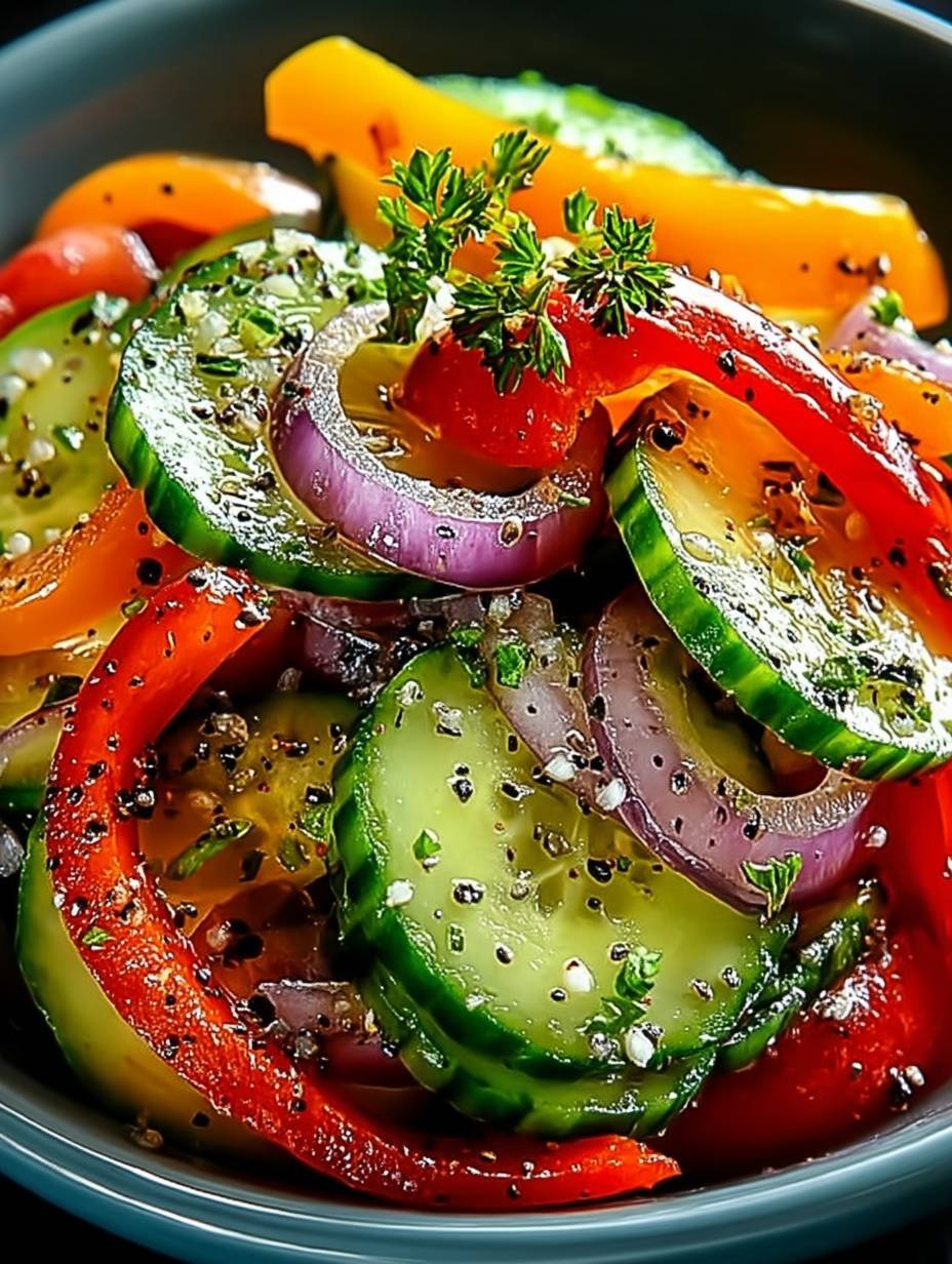 This Cucumber Sweet Pepper Salad is not only incredibly easy to prepare but also boasts a unique flavor profile that dances between sweet and tangy. With its stunning colors and presentation, it’s sure to impress at any gathering. Plus, its versatility allows you to customize it with your favorite ingredients or whatever’s lingering in your fridge – think crumbled feta or chopped herbs – making it the perfect sidekick for any meal.