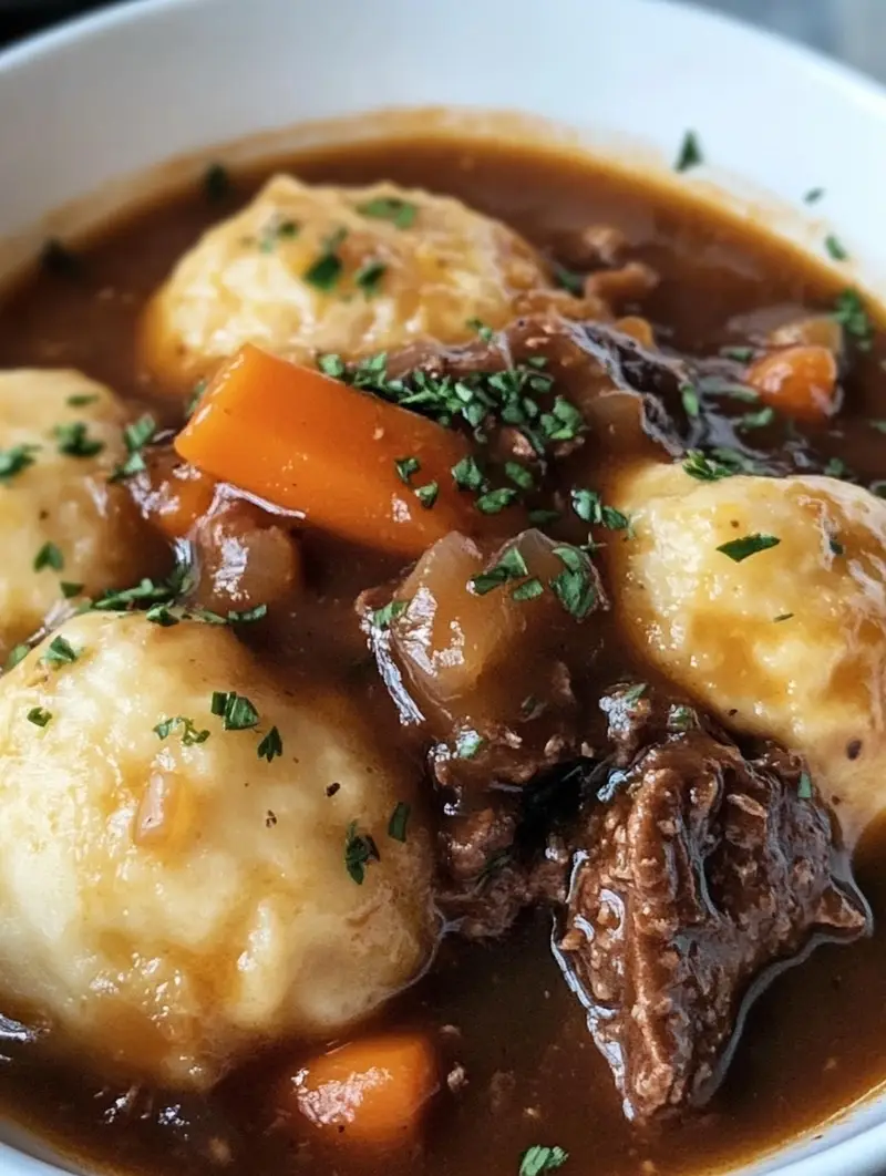 This beef stew with dumplings is a hearty and comforting meal perfect for cozy evenings. Tender beef, flavorful vegetables, and fluffy dumplings combine in a rich broth that warms the soul. This versatile, family-friendly dish is easy to customize and perfect for weeknight dinners or special gatherings.