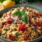 • Orzo Pasta This tiny rice-shaped pasta cooks quickly and absorbs flavors beautifully, giving the dish its satisfying base. Look for whole grain orzo for added nutrition.