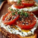 The delightful crunch of toasted sourdough mingles with creamy ricotta and juicy tomatoes, creating a symphony of flavors that dance on your taste buds. Each bite is a delightful balance of warmth and freshness, perfect for breakfast or a light lunch.
