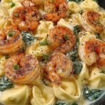 The savory aroma of garlic mingles with tender shrimp and pillowy tortellini, creating a dish that dances on your taste buds. Each bite is a delightful symphony of flavors, from the buttery richness of the sauce to the subtle kick of freshly cracked pepper.