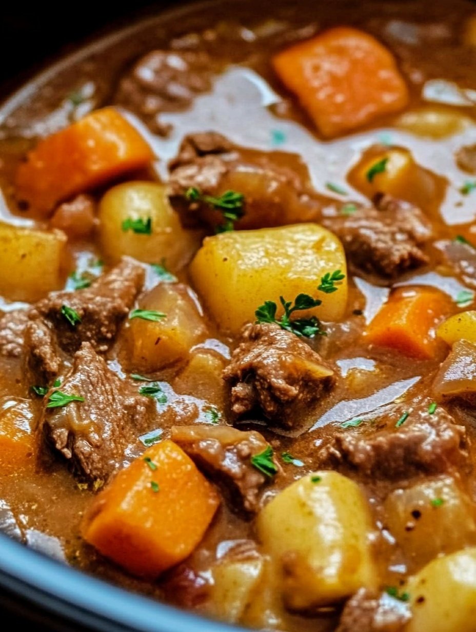 Slow cook: Cover the Crock Pot with the lid and cook on LOW for 8 hours or on HIGH for 4–5 hours. The beef should be fork-tender, and the vegetables should be soft but not falling apart.